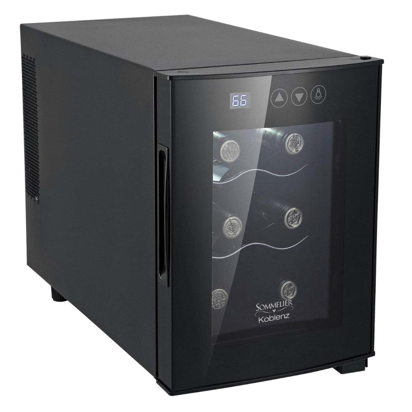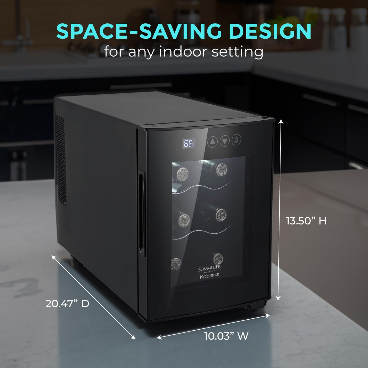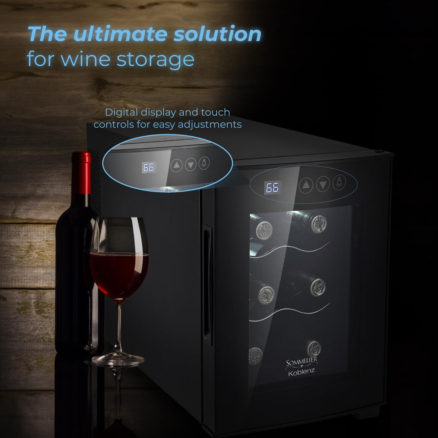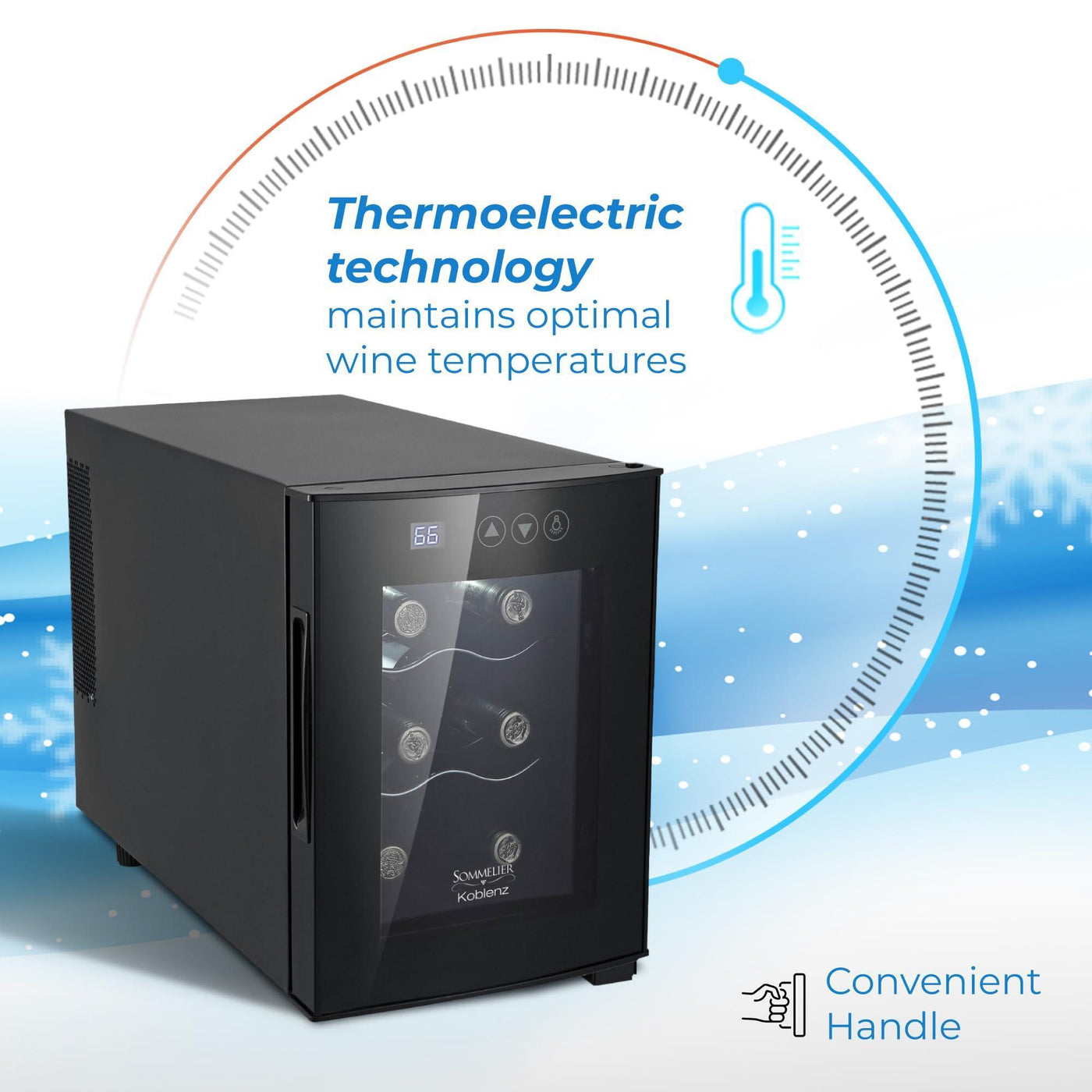 Koblenz 6-Bottle Free Standing Single Zone Fridge and Chiller, Thermoelectric Wine Cooler with Digital Display and Touch Controls, Black, 750 ml Wine Bottles (EVFK-06) Sale