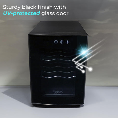 Koblenz 6-Bottle Free Standing Single Zone Fridge and Chiller, Thermoelectric Wine Cooler with Digital Display and Touch Controls, Black, 750 ml Wine Bottles (EVFK-06)