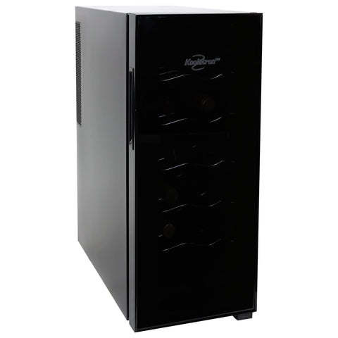 - STYLISH DESIGN - This Koolatron 12 Bottle elegant freestanding wine cooler holds up to 12 standard-sized wine bottles & fits perfectly on a table or countertop. Its sleek and modern design complements any decor, adding a touch of sophistication to your home. The stylish appearance of this wine refrigerator makes it not only a functional appliance but also an attractive piece of furniture that enhances the aesthetic appeal of your living space.
