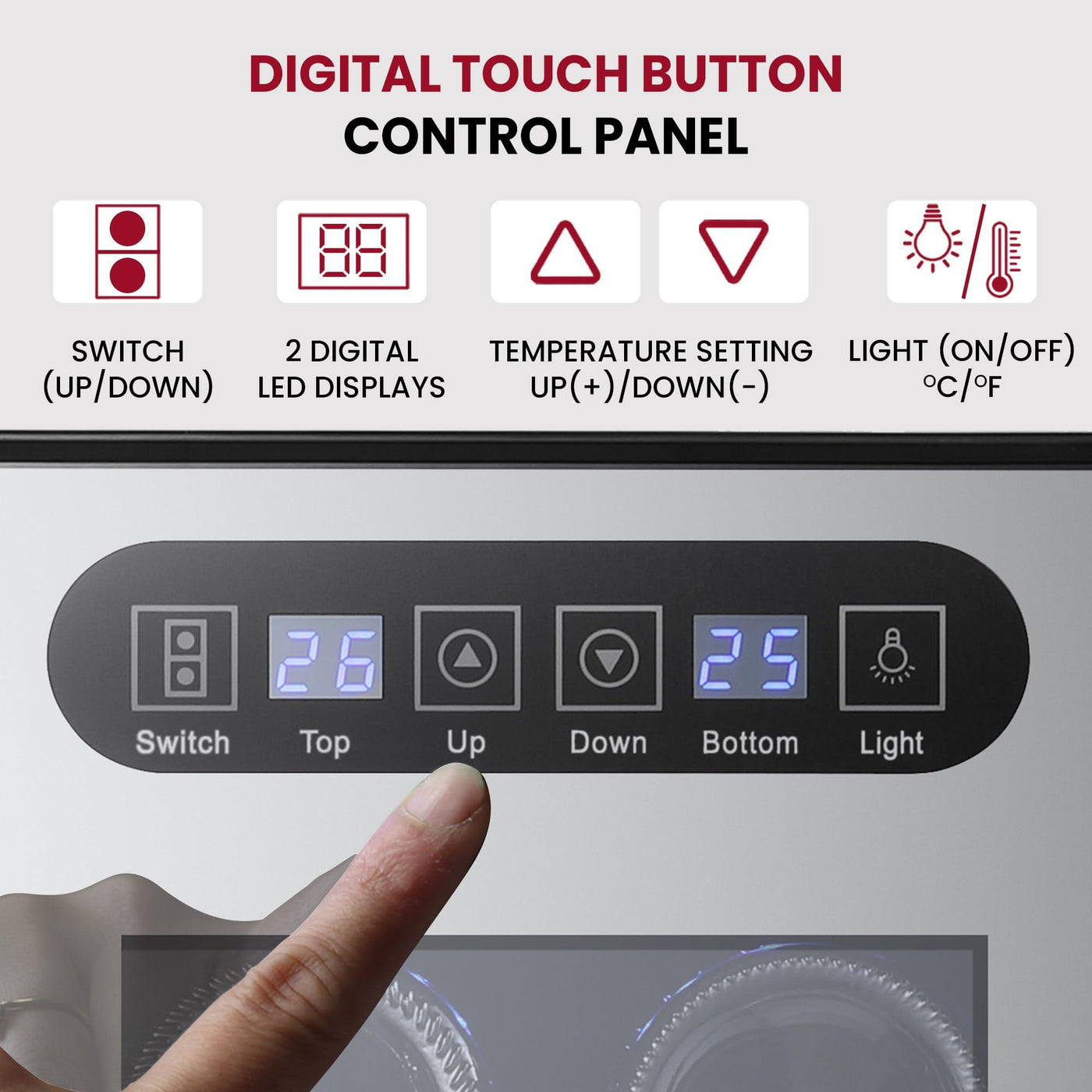 - TOUCH SCREEN CONTROLS - The Koolatron 18 Bottle is equipped with external touch screen controls & a digital display, allowing users to view & adjust the temperature or turn the interior light on or off without opening the door. this feature helps maintain the cool air inside the wine cooler, ensuring efficient operation & preserving the quality of the wine.