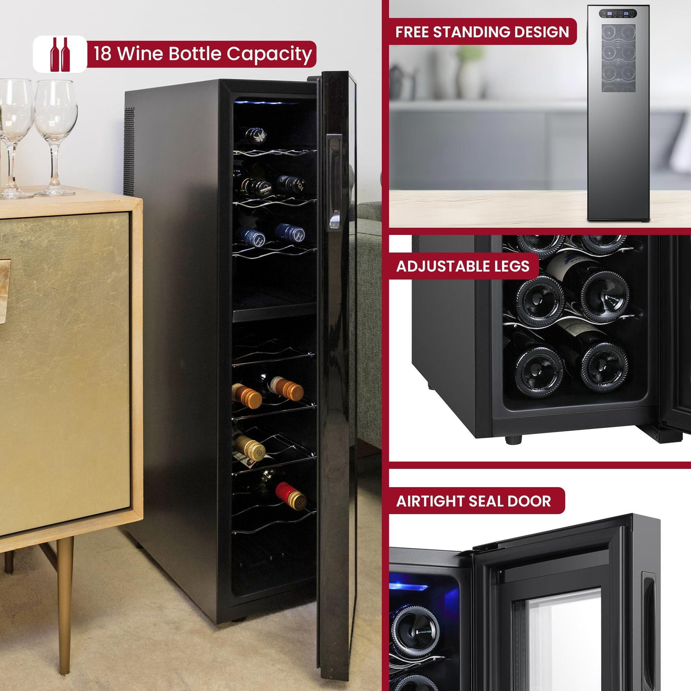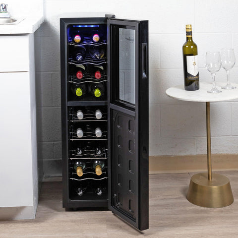 - FREESTANDING CONVENIENCE - The Koolatron 18 Bottle Slim Wine Cooler can be placed anywhere with a power source, providing flexibility in placement. Users can keep their favorite wines close at hand, whether in the kitchen, living room, or any other convenient location. The freestanding design allows for easy relocation and placement, making it a versatile addition to any home or office setup.