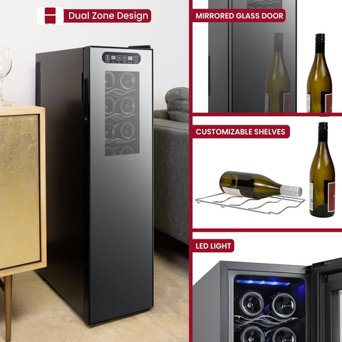 - DUAL ZONE COOLING - The Koolatron 18 Bottle Wine Cooler features separately controlled temperature zones, allowing users to customize their ideal wine storage environment. the upper zone can accommodate up to 8 bottles, while the lower zone can hold up to 10 bottles. this dual zone cooling system ensures that different types of wine can be stored at their optimal temperatures.