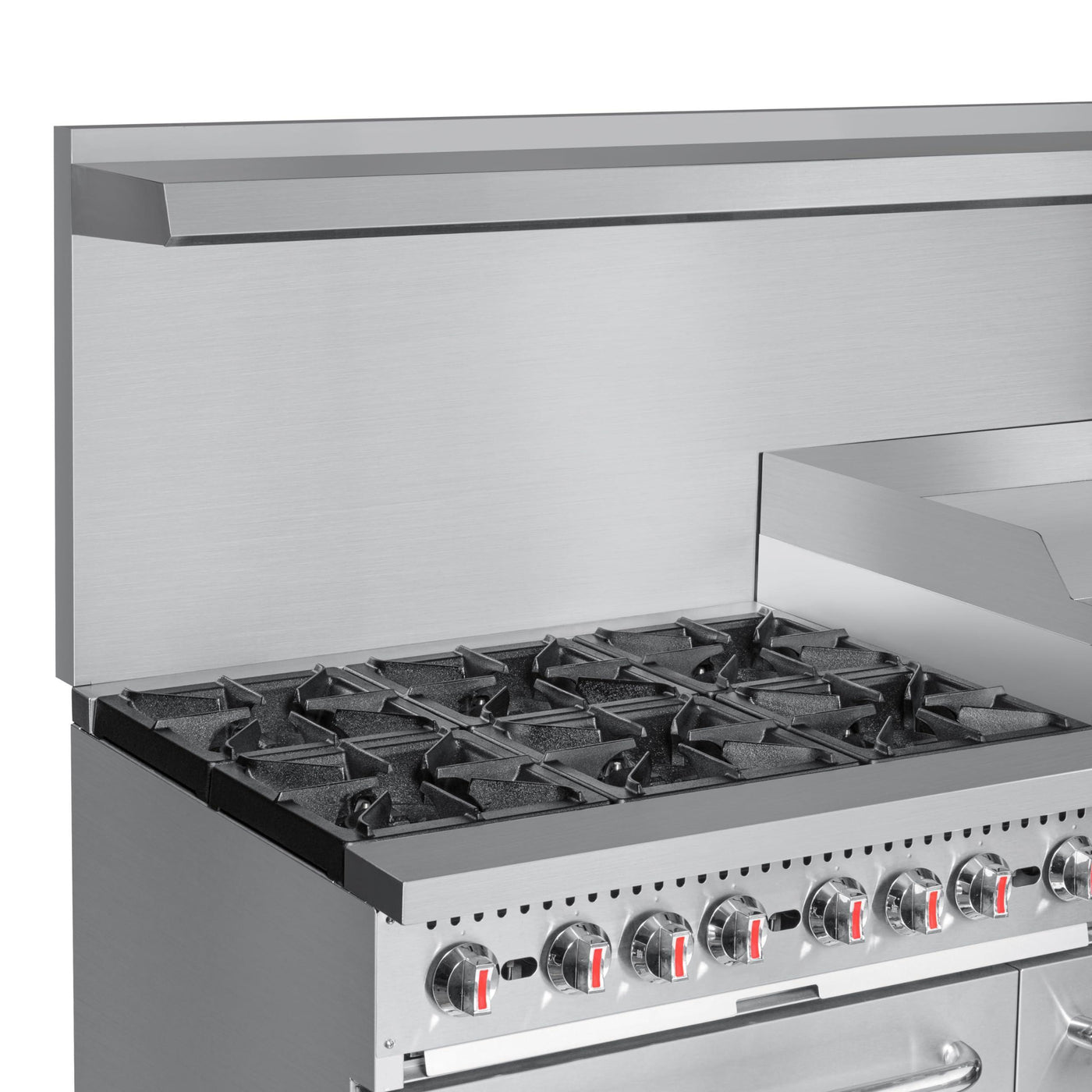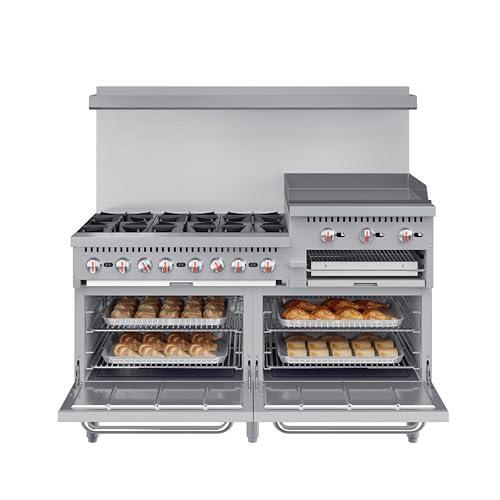 - Professional-Grade LP Range – Far more versatile than your standard propane gas range stove, this large 60-inch unit features dual ovens, multiple burners, and a 24 in. griddle and broiler system to provide plenty of cooking and baking options!