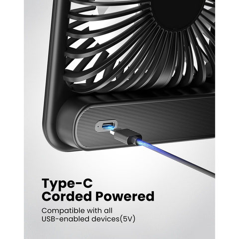 - 【Stylish and Compact】Adopting the latest design process, the mini desktop fan is further downsized while maintaining a trendy shape and large enough air output, so you can find a place to enjoy it on any crowded desktop.