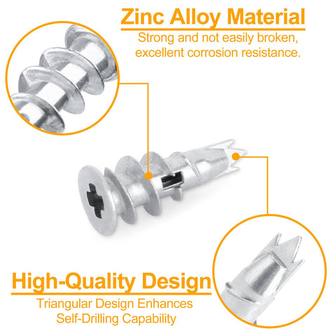 KURUI Metal Self Drilling Drywall Anchors, 116PCs Hollow Zinc Wall Anchors and Screws Kit, 58 Heavy Duty Sheetrock Anchors + 58#6 x 1-1/4'' Screws, 50LB Hanging and Mounting Sale