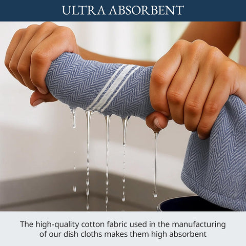 - Premium Tea Towels for Kitchen : Why waste your time scrubbing pots and pans when you can let our dish towel do the work for you? Our dish rags are made of 100% natural cotton, making them durable and firm enough to withstand repeated uses and washings without losing their shape or color.