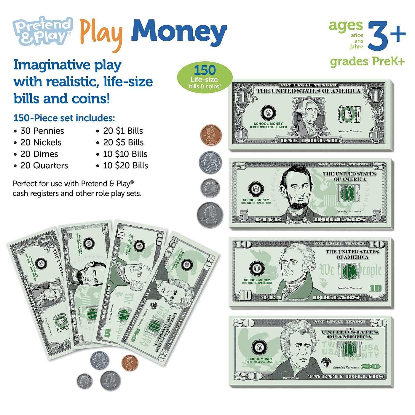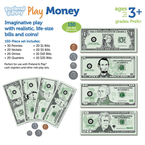 Learning Resources Pretend Play Money - 150 Pieces, Ages 3+ Play Money for Kids, Pretend Money for Kids, Play Money Set, Money and Banking Play Toys, Toddler Learning Toys,Easter Basket Stuffers Sale