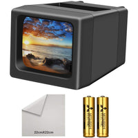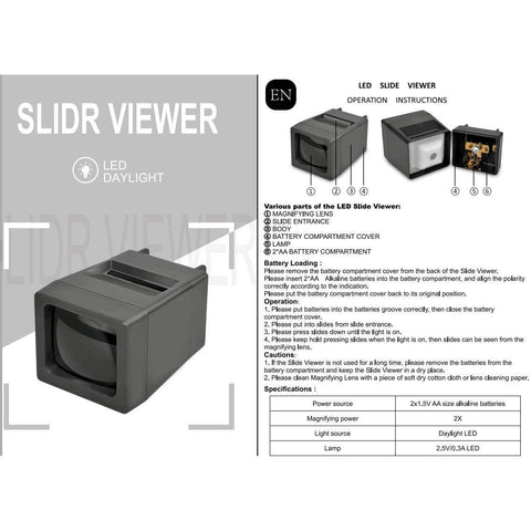 - User-friendly, install 2*AA batteries(included), insert and press the slide to activate the slide viewer