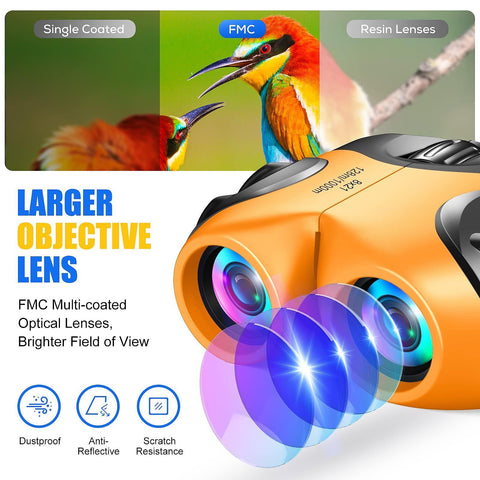 - ★Advanced design: non-slip scratch, the grip has been ergonomically patented designed to fit the hands of kids. It is easy to focus, and they can adjust to adult just as well as kid sized eyes. The leaves of a tree 100 yards away came into sharp focus