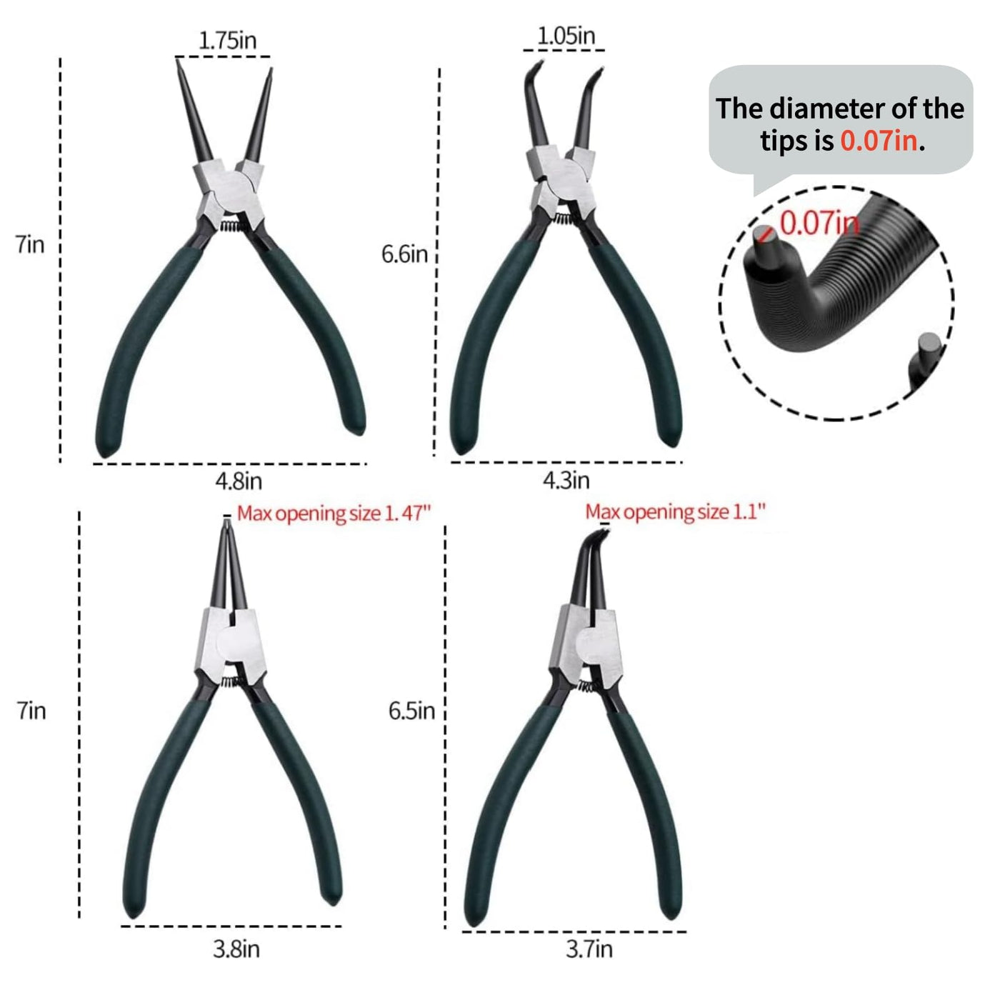 1.Package includes 4pcs different type 7" internal / external circlip pliers to meet different needs