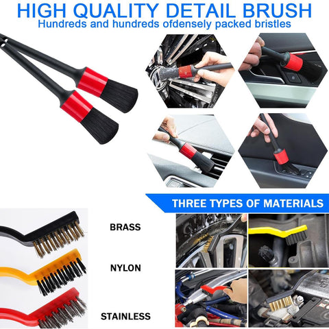 - Car Cleaning Kit Interior Detailing Kit: Used for car interior and exterior cleaning, car tire cleaning, car glass cleaning, and so on. A series of multi-functional and easy-to-use car wash tools can meet your various cleaning needs. eds. All car cleaning kit tools come in a handy cleaning kit case. You can place it anywhere in your trunk or back seat. Car cleaning kits make ideal gifts for yourself, family, and friends!