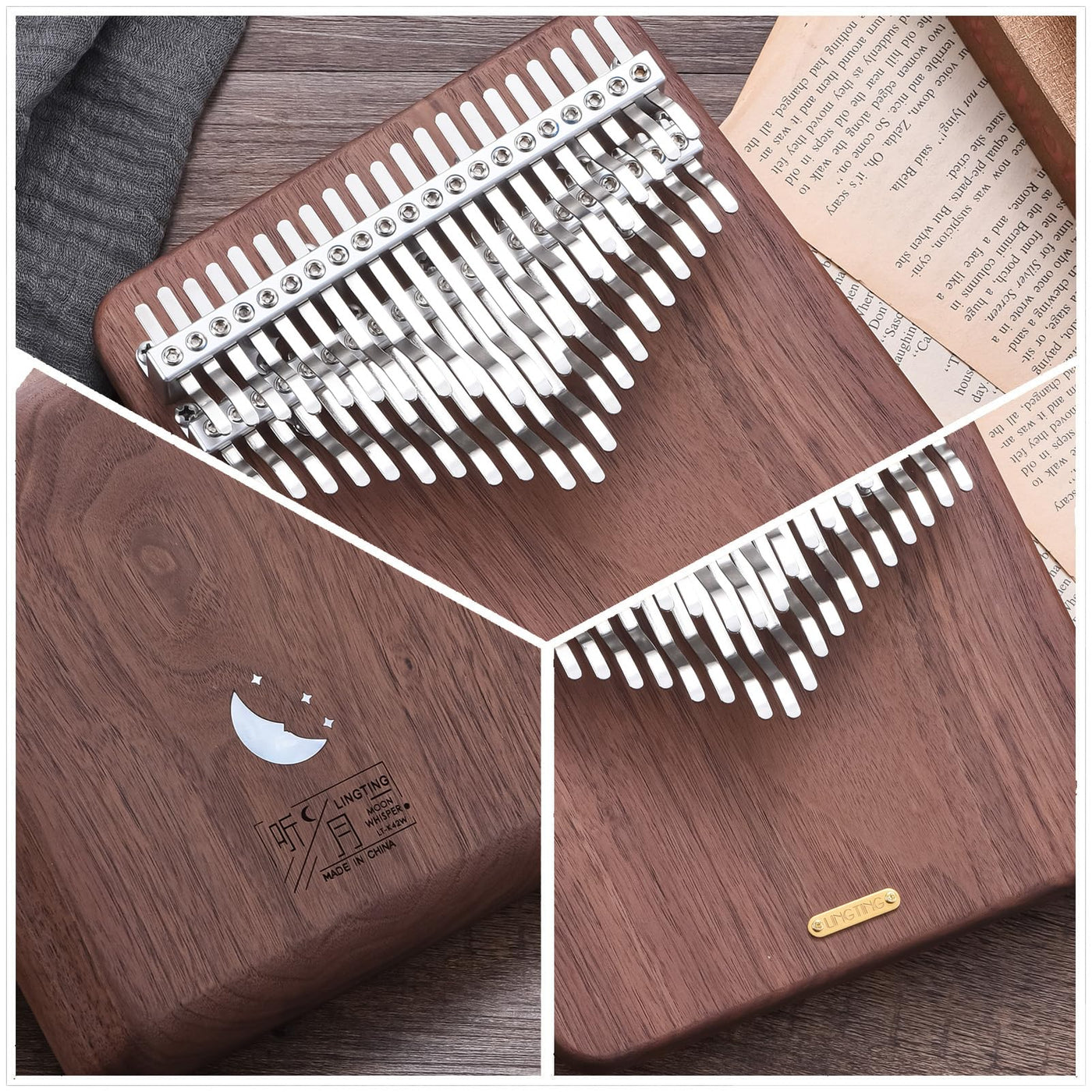LingTing Kalimba 42 keys Solid Walnut Wood Thumb Piano Chromatic Mbira Finger Piano Gift for Kids Adult Beginners Professional(LT-K42W,Moon Whisperer) Sale