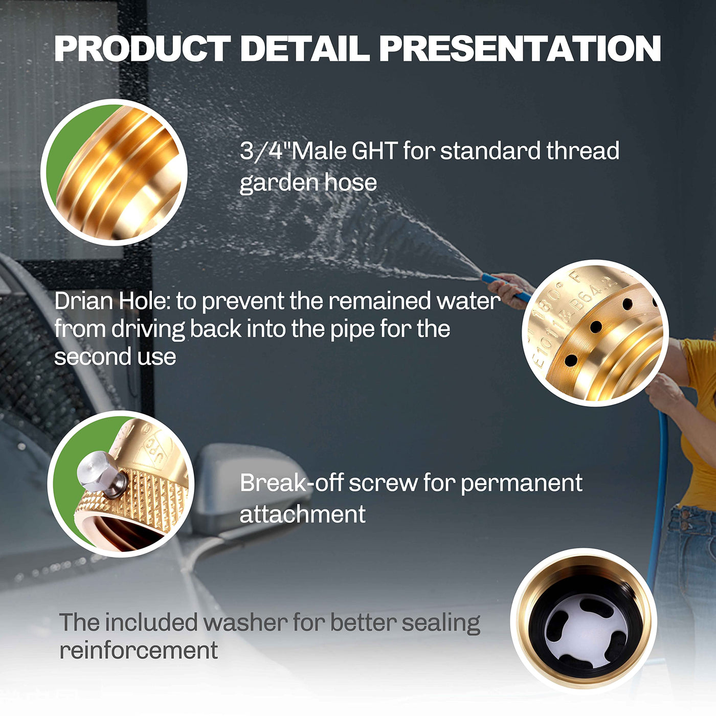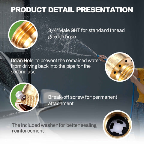 - 【Advanced Function】: Break-off screw for permanent attachment; eliminates back-siphonage into water supply; anti-backflow valve for most of standard hose and end valves including hose bibs, sillcocks, RV, garden spigot, outside water faucets, hydrants