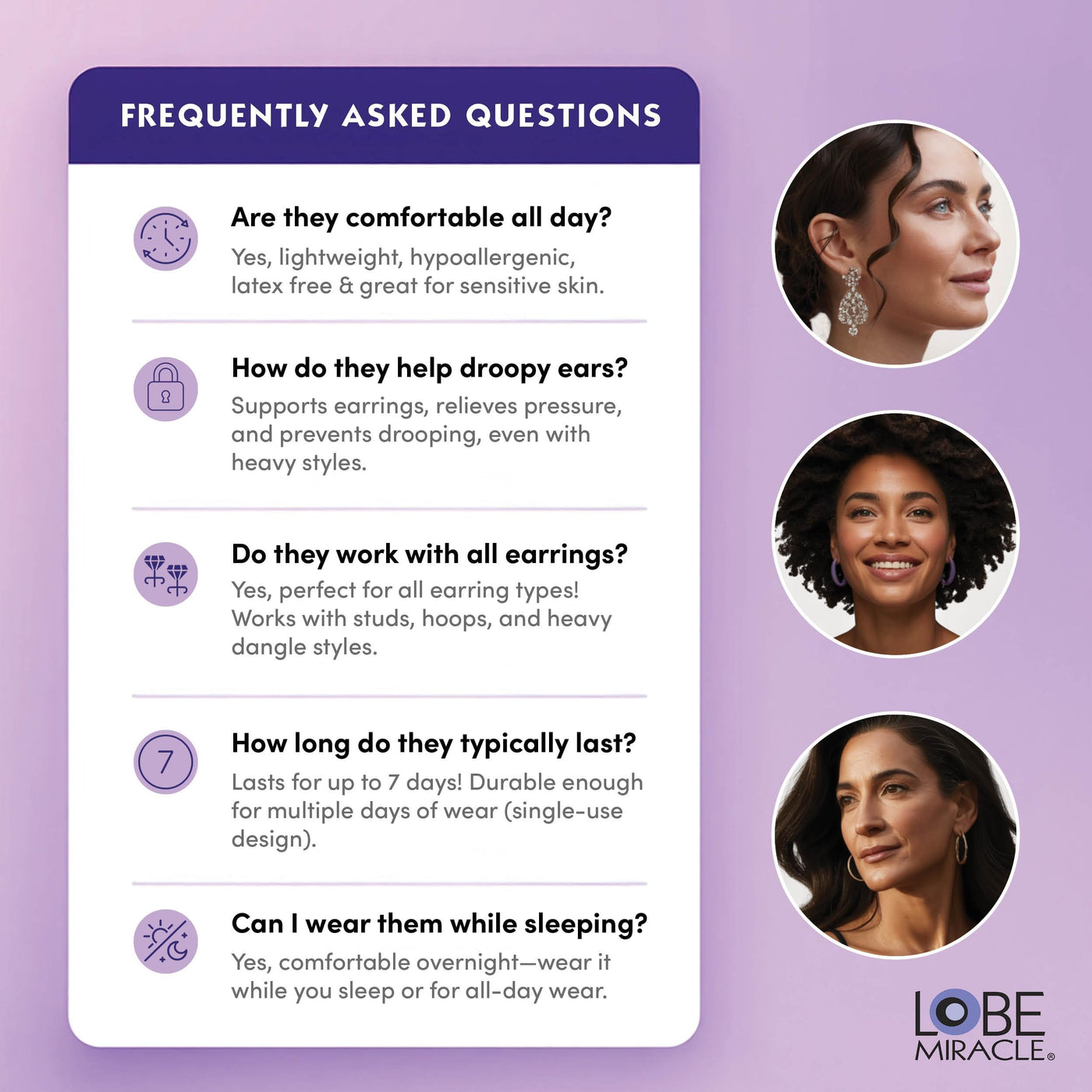Lobe Miracle- Clear Earring Support Patches - Earring Backs For Droopy Ears - Ear Care Products for Torn or Stretched Ear Lobes (60 Patches)