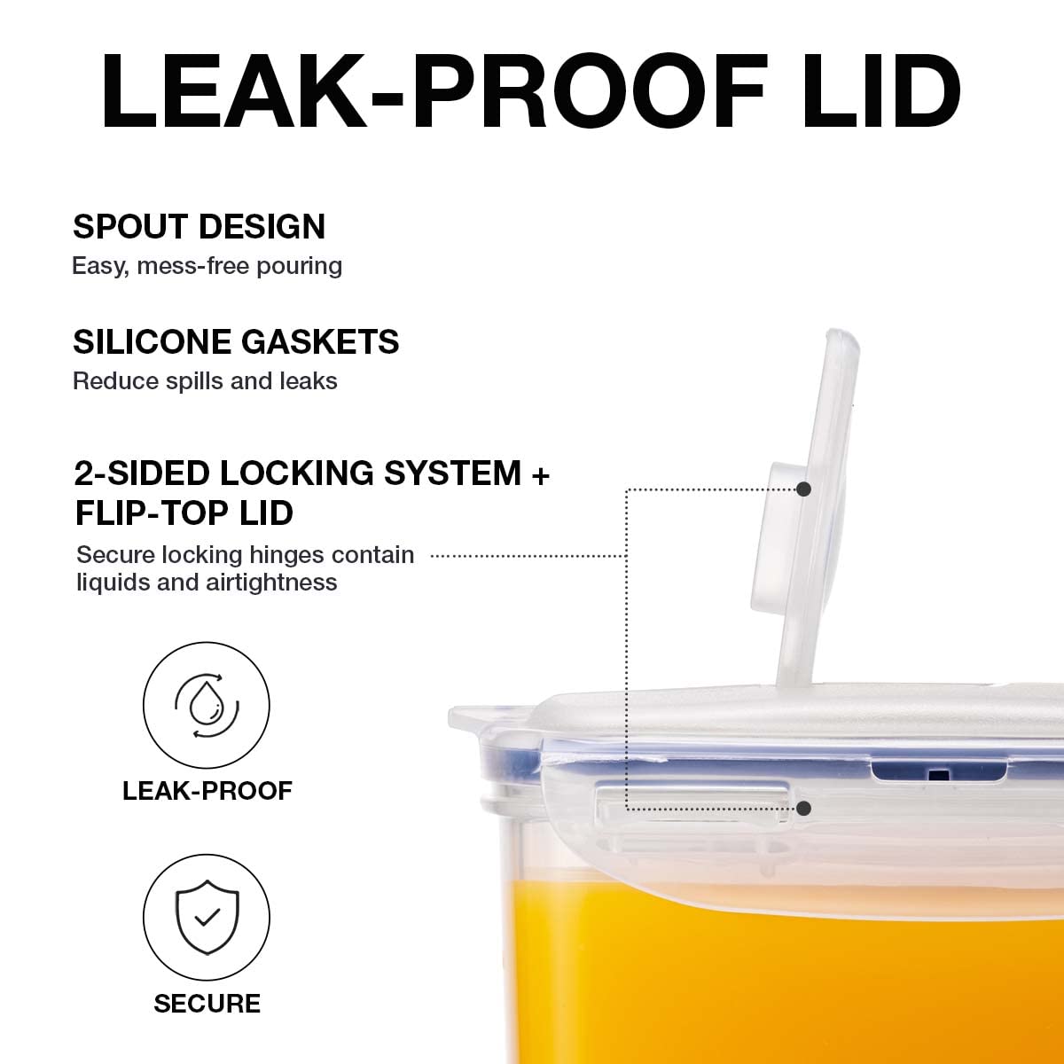 - Leakproof: LocknLock Fridge Jug is leakproof, airtight, and watertight. Our patented 2-sided hinge locking system and silicone sealed flip top lid prevents spills and keeps drinks/beverages fresh.