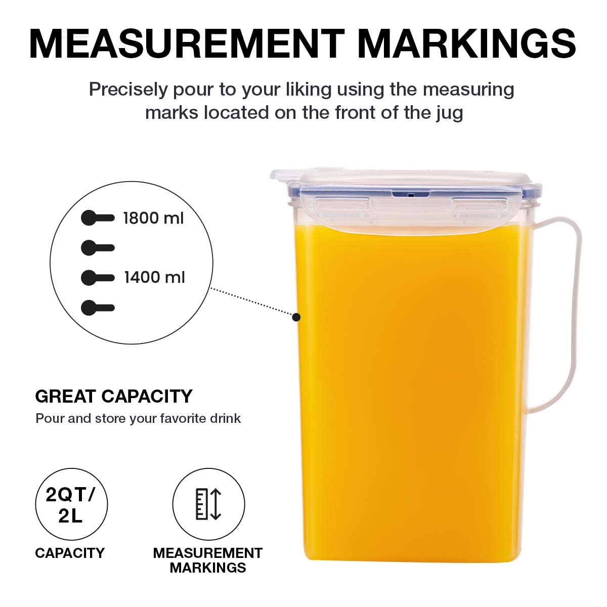 - Multiple Options: Available in two sizes (2 QT/2L, 3 QT/3L) and seven colors (Blue, Green, Purple, Red, White, Yellow, Clear). Color your fridge with LocknLock Fridge Jug.