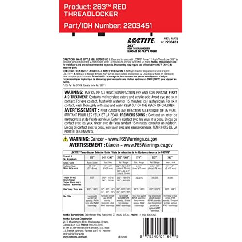 LOCTITE 263 Automotive Threadlocker Red – High Strength Thread Lock, General Purpose Applications, Oil Tolerant, Fluorescent - 6 ml, 1 Pack Sale