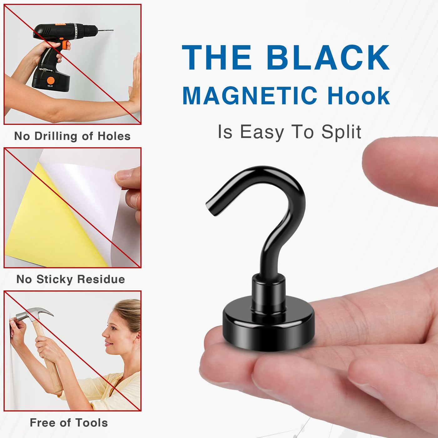 - 【HIGH QUALITY】 The black magnetic hook is composed of neodymium magnet and high quality A3 steel. Due to the addition of an iron shell, the suction of magnetic hook is several times that of an ordinary magnet. Metal magnetic hook, strong magnetism forever!