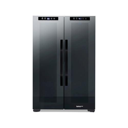 Details: After a long day, there's nothing better than the company of good friends, good food, and a great glass of wine. The Luma Comfort Shadow Series 12 Bottles & 39 Cans Dual Temperature Zones Bottle Wine and Beverage Fridge lets you enjoy the finer things in life-and looks great doing it. The sleek, updated design features a mirrored glass door that blends perfectly into your décor while resisting smudges and fingerprints. The double pane glass blocks harmful UV rays to protect your wine's flavor and aroma. The durable control panel is built right into the glass, allowing you to select the perfect temperature with ease. It's never been easier-or more stylish-to serve up your favorite vintage.