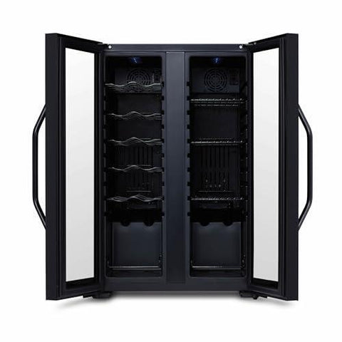 - [VERSATILE ADJUSTABLE SHELVES] - This wine chiller comes with sleek black wine racks that can be easily removed, making it easy to load bottles, giving you convenient access to your collection.