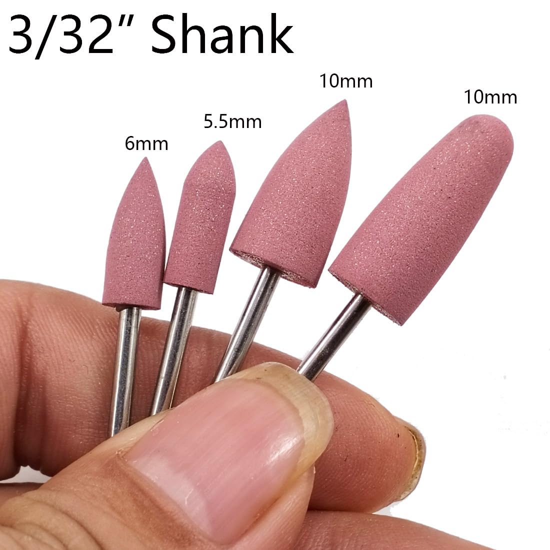 - Rubber polishing bits have different shape includes 4 sizes: 5.5mm, 6mm, 10mm, 10mm