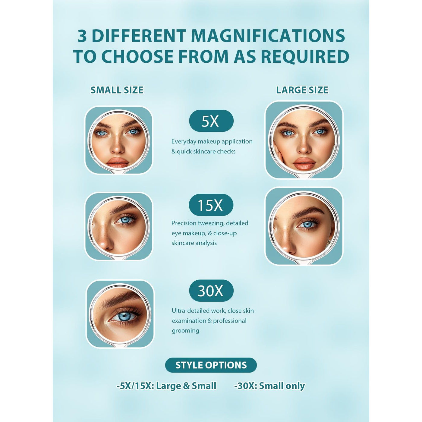 - Double-Sided Design: This handheld mirror features a flat mirror on one side and a 5X magnifying mirror on the other, making it an essential tool for precise makeup application and grooming
