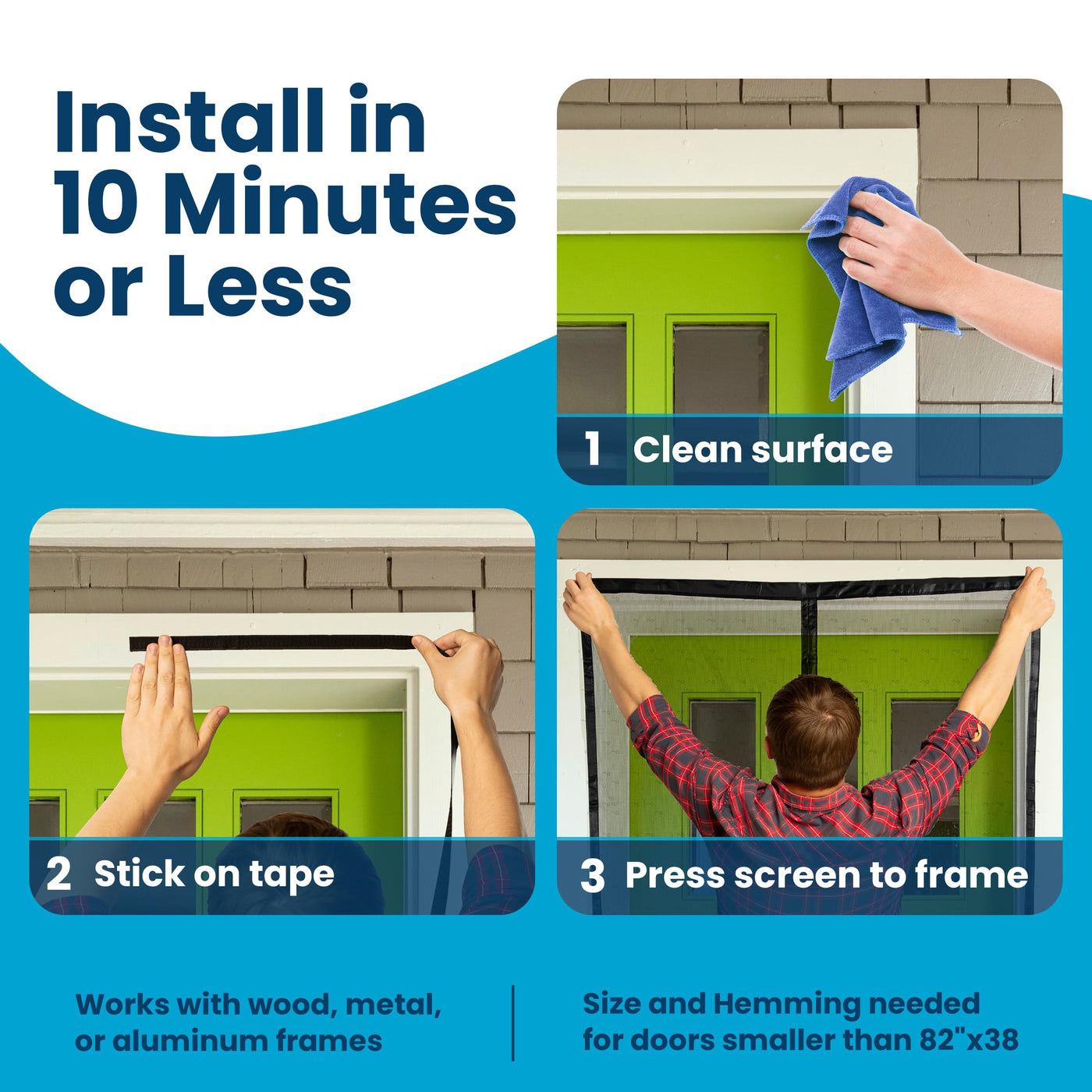 - CHECK YOUR DOOR SIZE FIRST: This screen door is made for doors measuring up to 38 x 82 inches. To avoid sizing issues, ensure you measure your door frame accurately before purchasing. A quick check ensures the best fit and performance