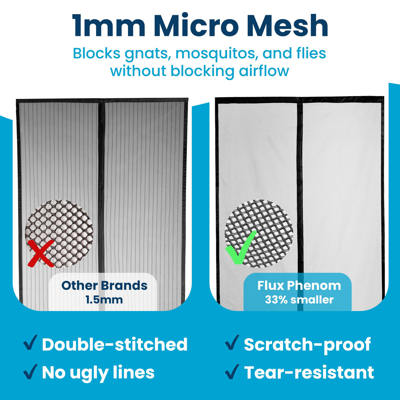 - SCRATCH-RESISTANT FINE MESH: BUILT FOR PETS & BUGS: Crafted with upgraded mesh screen material, our pet-tested design resists tearing while keeping out bugs; the breathable fine-weave allows airflow ideal bug screen for doorway use