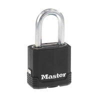 Details: The Master Lock Magnum M115XDLF Covered Laminated Steel Padlock with Key features a 1-7/8 in. (48 mm) wide laminated steel body for maximum strength and reliability, and is surrounded by stainless steel and zinc outer components for weather resistance. The Rust-Oleum Certified protection provides a lifetime guarantee against rusting on the lock body; and covered lock body, keyway, and shackle seals offer additional weather protection. The 5/16 in. (8 mm) diameter octagonal shackle is 1-1/2 in. (38 mm) long and made of Tough-Cut boron-carbide, 50% harder than hardened steel, offering maximum resistance to cutting and sawing. The 4-pin cylinder prevents picking and the dual locking ball bearings provide maximum resistance against prying and hammering. The Lifetime Guarantee provides peace of mind from a brand you know and can trust. Rust-Oleum Certified Protection is a registered trademark of Rust-Oleum Corporation.