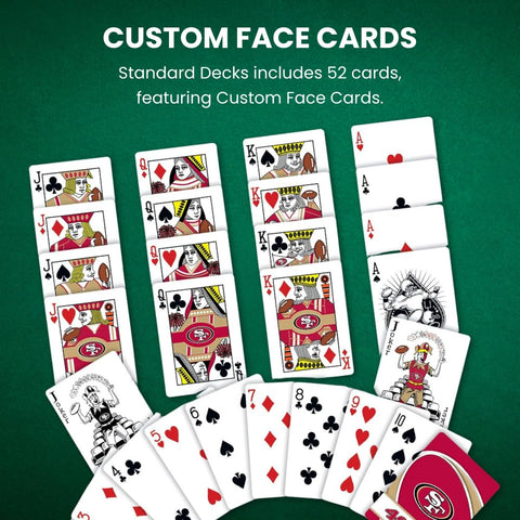 - CUSTOM FOOTBALL DESIGNS: Back of each card features your favorite team’s logo; face cards and jokers are uniquely illustrated to show off your team spirit