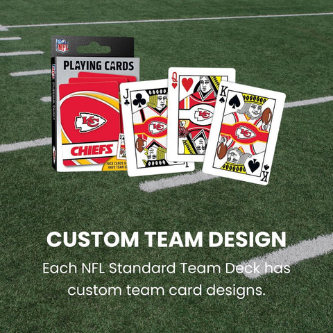 - OFFICIALLY LICENSED: Our NFL playing cards are the perfect deck for tailgate parties, family game night, poker, and more; collectible deck includes 52 playing cards and two jokers