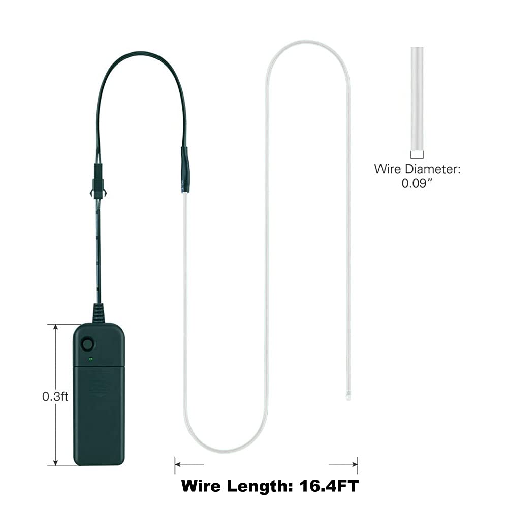 MaxLax EL Wire Ice Blue, 16.4ft/5m Portable Battery Pack Neon Light Strip 360° Cuttable Glowing Rope Lights for Parties, Halloween, DIY Decoration Sale