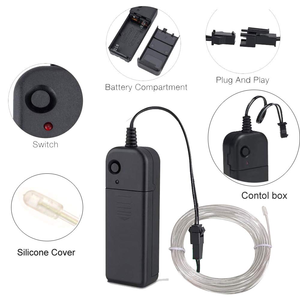 MaxLax EL Wire Ice Blue, 16.4ft/5m Portable Battery Pack Neon Light Strip 360° Cuttable Glowing Rope Lights for Parties, Halloween, DIY Decoration