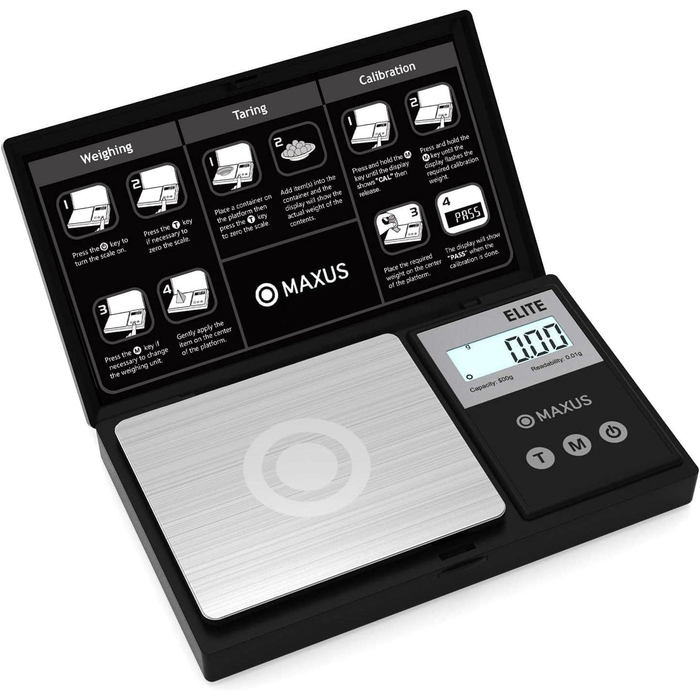 MAXUS Digital Pocket Gram Scale 500g x 0.01g High Precision with Tray, Weighs Small Food, Jewelry, Ounces, Grains, LCD Display, Tare Function
