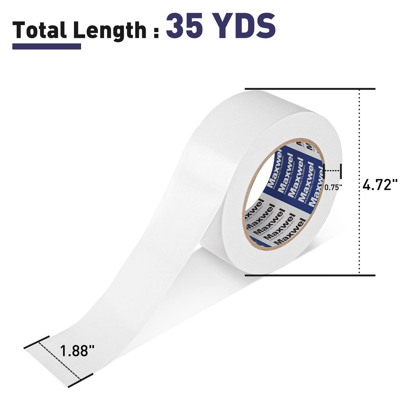 - Multi-purpose white duct tape:1.88 inch 35 yards length,can stick to surfaces like wood,carpet,leather, boxes,plastic and so on,ideal for various home repairs,bundling,fixing,box sealing and more;