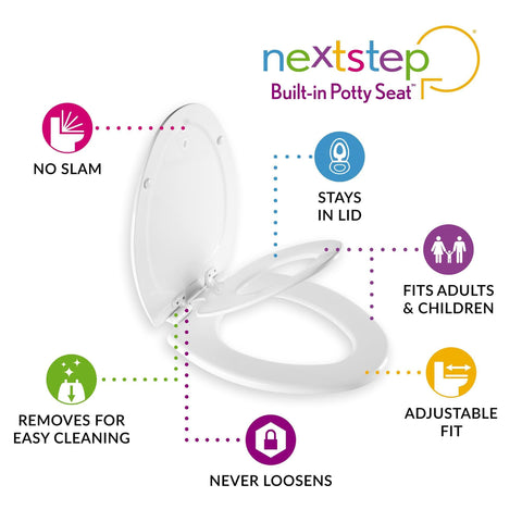 Mayfair NextStep2 Toilet Seat with Toddler Potty Training Seat Built-In, Slow Close, Easy Clean, Magnetic Removable Kids Seat, Made in USA, ROUND, White Sale