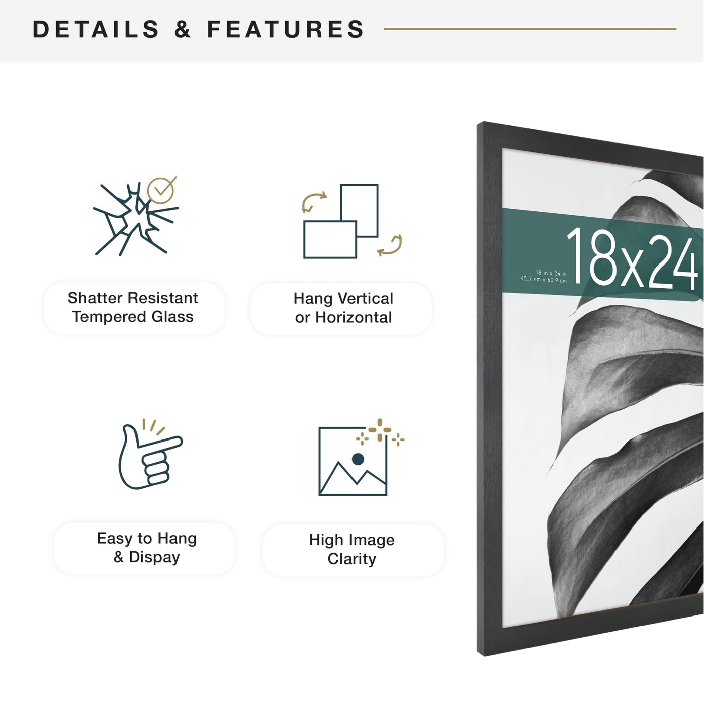 - DIMENSIONS: This large picture frame features a 1.1-inch wide modern profile and holds a 18x24 x 0.75 poster, picture or artwork.
