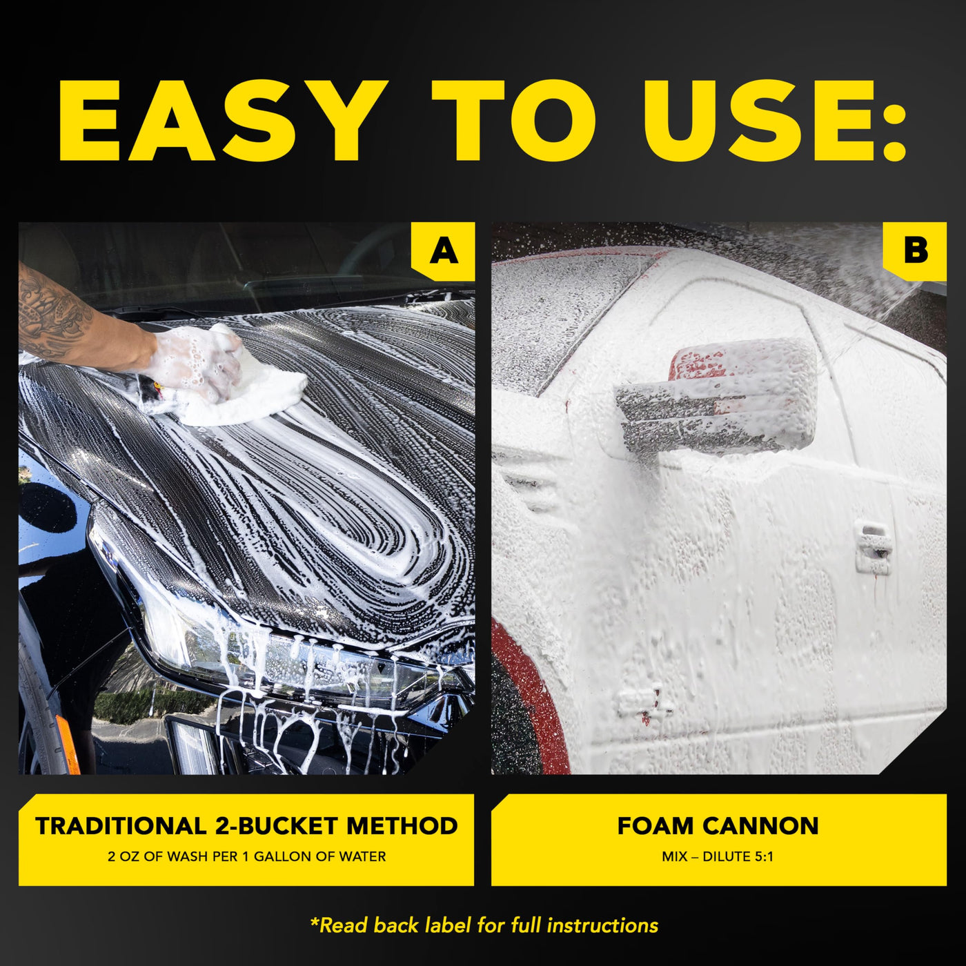 - THE PERFECT PROFESSIONAL CLEAN: Experience the ultimate clean with this eco friendly car wash soap. Its biodegradable formula forms powerful suds that easily pick up and foam away even the toughest dirt, road grime, and contaminants.