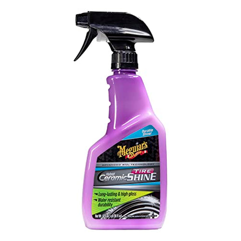 - HYBRID CERAMIC PROTECTION: Meguiar's Hybrid Ceramic Tire Shine features advanced SiO2 Hybrid Technology that increases durability and shine. The ceramic particles bond to your tires, forming a protective layer that’s durable and long-lasting.