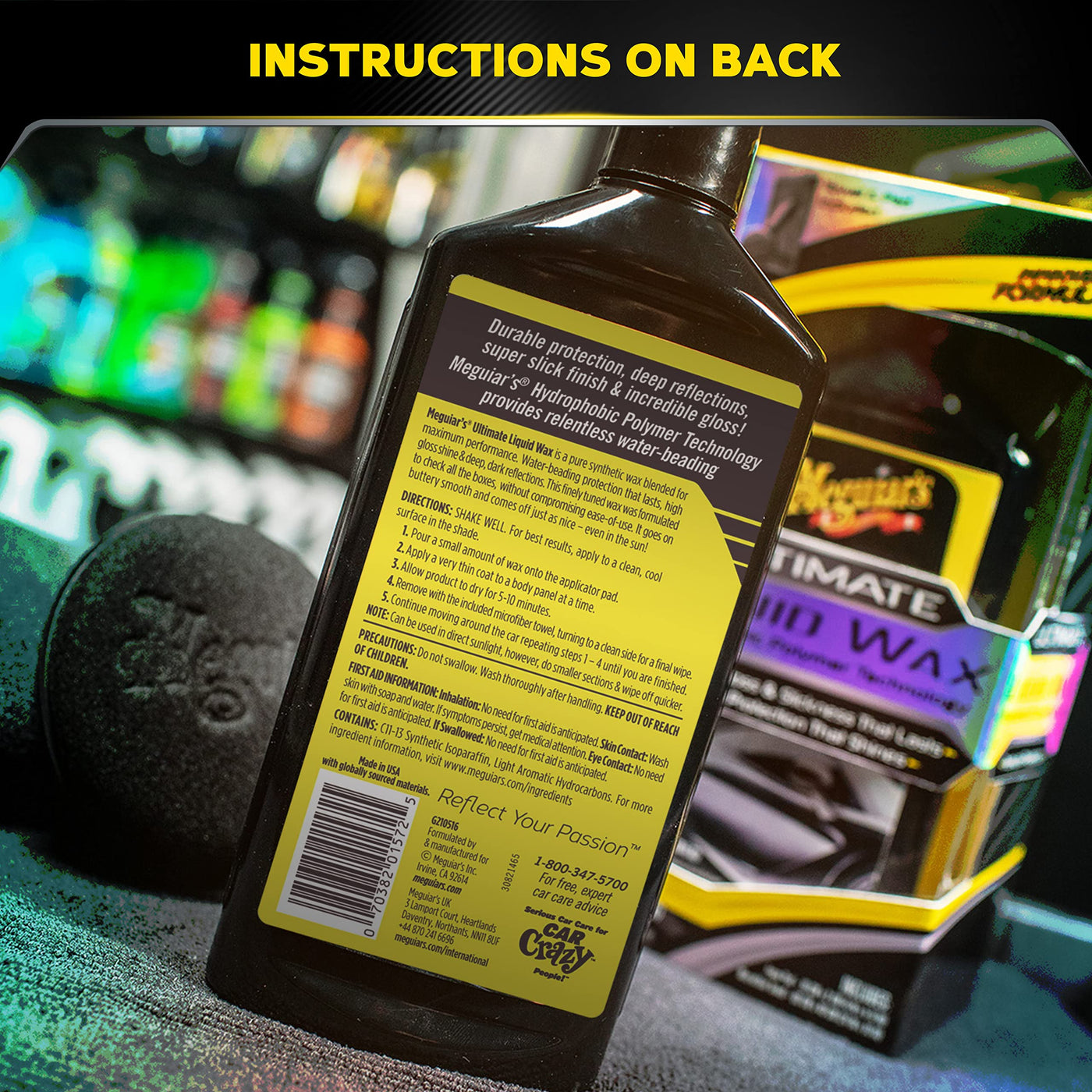 Details: Achieve maximum performance and protection with Meguiar's Ultimate Liquid Wax. Our premium paint protectant features a pure synthetic wax blend that delivers outstanding results. With an improved formula, this liquid wax now offers even greater durability, ensuring your vehicle stays protected for longer. Experience the power of Meguiar's proprietary Hydrophobic Polymer Technology. This innovative technology increases surface tension, resulting in relentless water beading action that lasts. Your vehicle will stay protected against the elements, including rain, dirt, and UV rays. Not only does Meguiar's Ultimate Liquid Wax provide exceptional protection, but it also enhances the appearance of your vehicle. Enjoy deep, dark reflections and an incredible gloss and shine that will turn heads wherever you go. The slick finish adds a touch of luxury to your vehicle's exterior. We understand the importance of ease of use, which is why Meguiar's Ultimate Liquid Wax is designed for a hassle-free application either by hand, or with a DA polisher for car detailing. Whether you're working in shade or under the sun, this car wax goes on smoothly and effortlessly. Even in challenging conditions, you can achieve professional-grade results with minimal effort. To ensure you have everything you need for a flawless application, we include car detailing supplies such as a premium foam applicator and a black microfiber towel. These high-quality car detailing products are designed to enhance your waxing experience and provide optimal results. Take your vehicle's protection and appearance to the next level with Meguiar's Ultimate Liquid Wax. Discover why car enthusiasts around the world trust our products to deliver exceptional results.