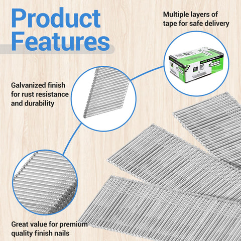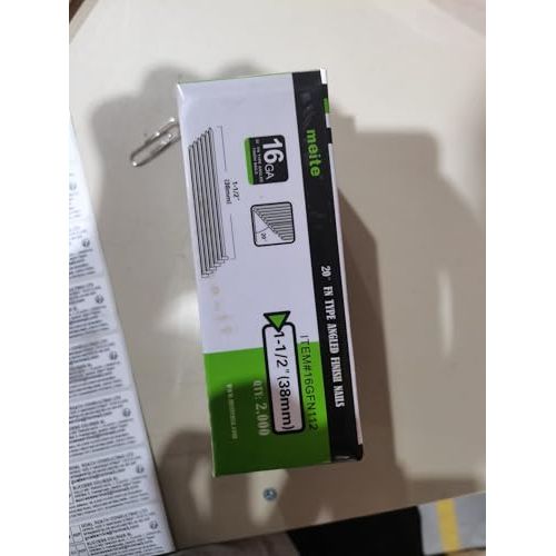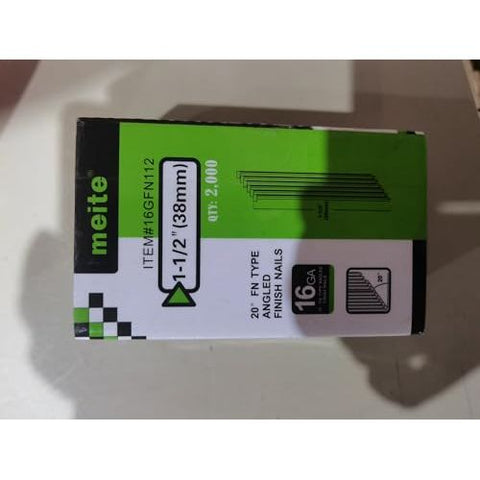 - WHAT'S IN THE BOX: Contains 2,000 pieces 1-1/2" galvanised 16 gauge 20 degree angled finish nails. These finishing nails provide the strength and durability you need for your woodworking and light construction projects. (Extra tape on the outside of the package to reduce the possibility of it falling apart in transit.)