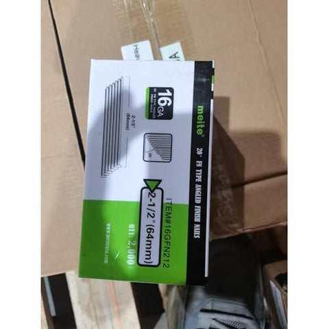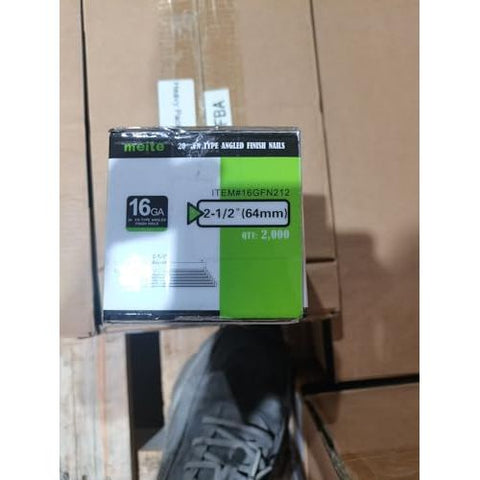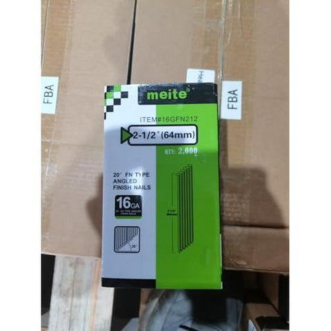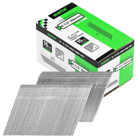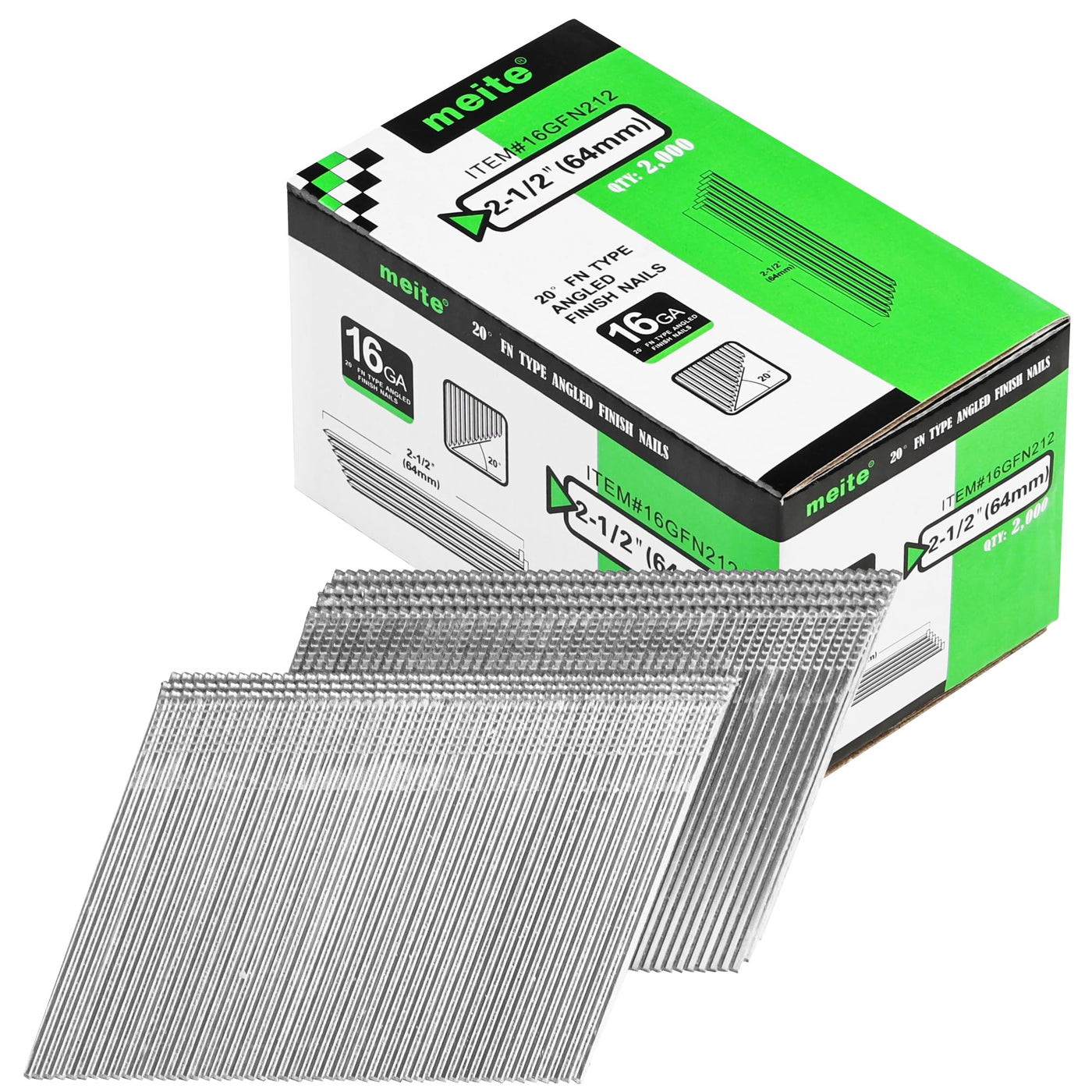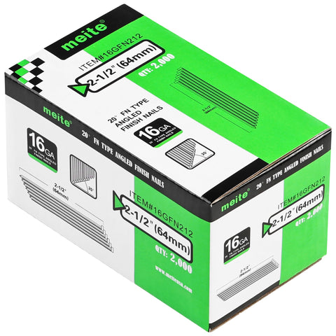 - WHAT'S IN THE BOX: Contains 2,000 pieces 2-1/2" galvanised 16 gauge 20 degree angled finish nails. These finishing nails provide the strength and durability you need for your woodworking and light construction projects. (Extra tape on the outside of the package to reduce the possibility of it falling apart in transit.)