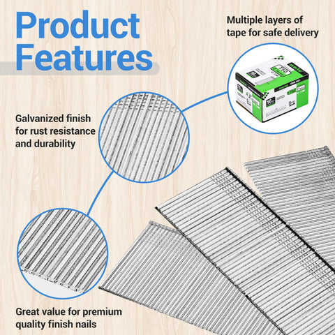 meite 16 Gauge Finish Nails, 2-Inch Galvanized 16GA Finish Nails, Small Straight Finishing Nail, Ideal for Woodworking, Upholstery, and Framing Projects (2,500 Counts) Sale