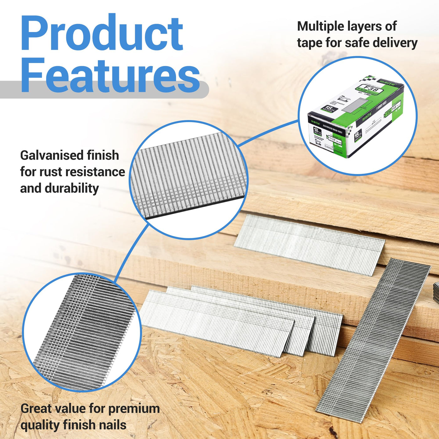 meite 18 Gauge Brad Nails, 1-1/2-Inch 18GA Brad Nails, Galvanized Nail Gun Nails for Pneumatic, Electric Brad Nailer Gun (5,000 Counts)