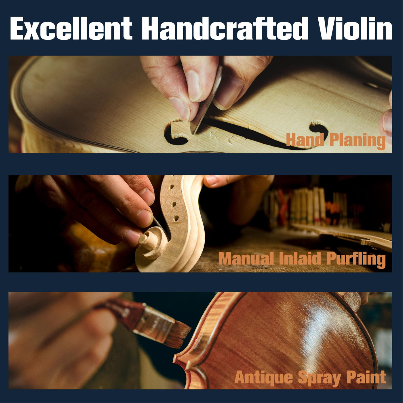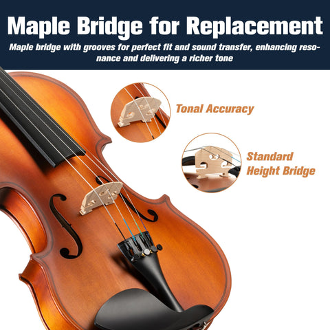 - Handle With Care: The 1/2 violin, like most band & orchestra musical instruments, is delicate. Please note the bridge will not be setup to avoid damage during shipping. NOTE: Tuning pegs must be handled with care and pushed in when adjusting.