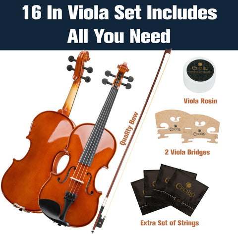 Details: The Mendini violas are teacher approved. This viola features a hand-carved solid spruce top, maple back and sides. Equip with rosewood pegs, chin rest, and fingerboard, and an alloy tailpiece with 4 built-in fine tuners. Package includes a lightweight form fitting hard case with pockets and backpack strap, making it convenient to carry to school or orchestra. Also the following accessories are included making this viola package great for starters: Brazilwood bow with unbleached genuine Mongolian horsehair, rosin, bridge, and an extra set of viola strings.
