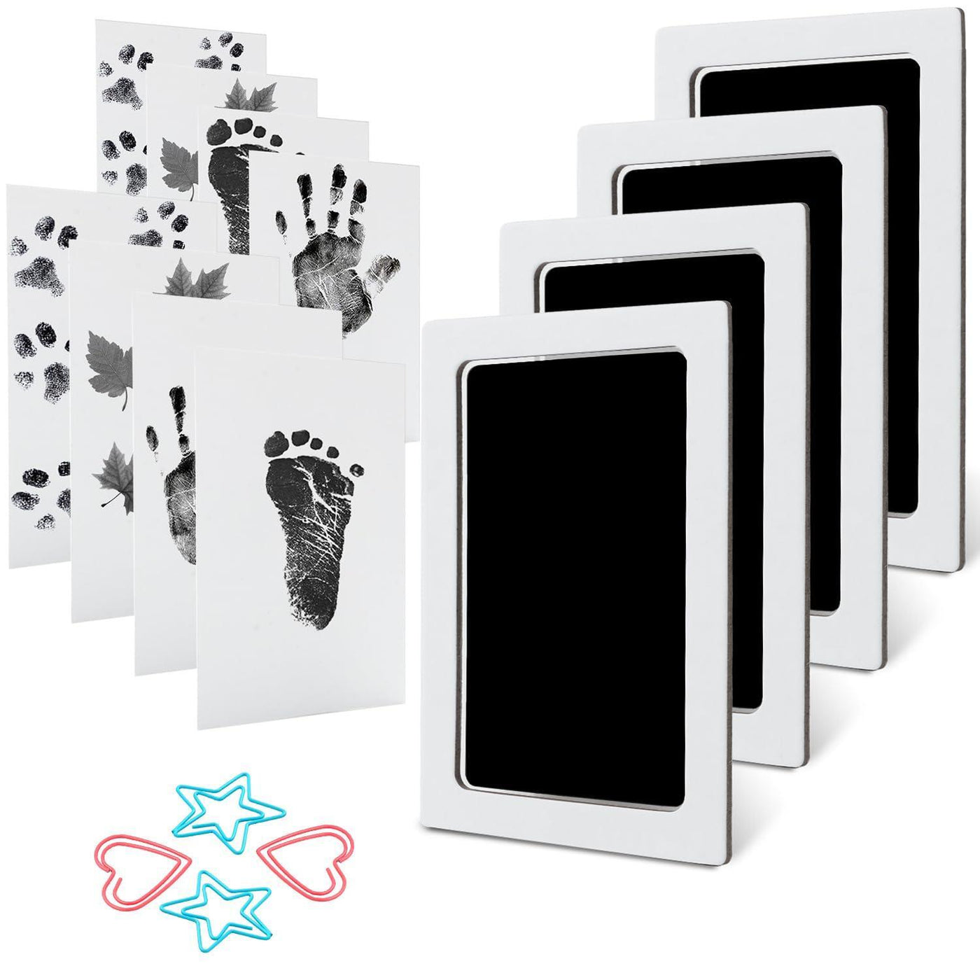 - 🐾Package Contents🐾 - 4 Small size ink pads and 8 imprint cards for more occasions. Bonus 4pcs plastic clips for fixing the ink pad's position. Ink pad accommodates hands/feet up to 3.74" length x 2.36" width, perfect fit for 0-6 Months old baby's hand and foot size.