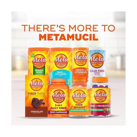 This product is made with the newest additions to Metamucil’s fiber family: Fibersol®*** and Inulin. For Metamucil’s signature Psyllium fiber, check out our flavored powders, capsules, wafers, or on-the-go packets.