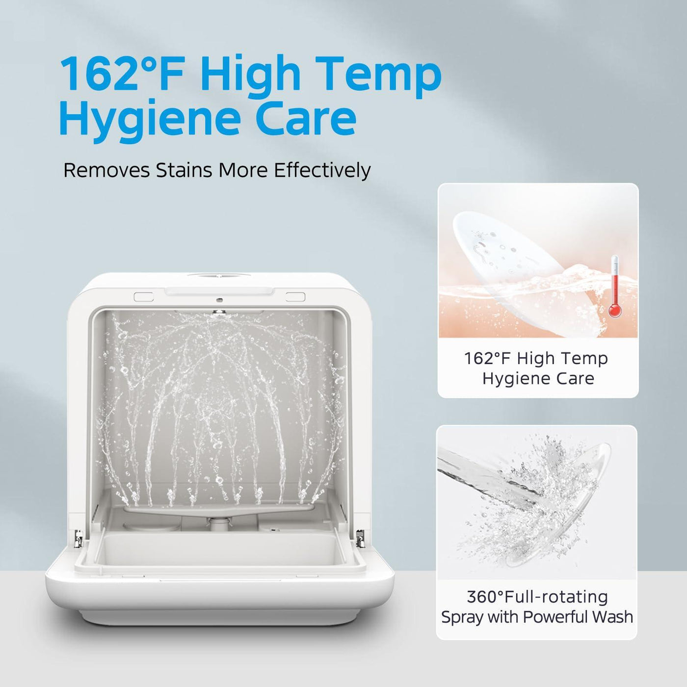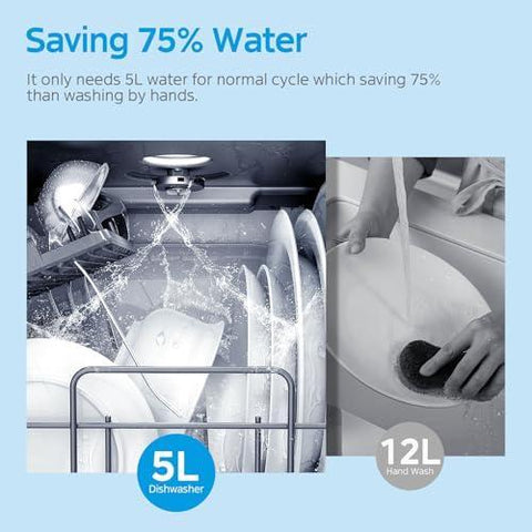- Ultra-compact Design : The ultra-compact design allows the dishwasher to wash 30+ items(Max to 9.5-inch plates) at a time while occupying a small area, which is ideal for small houses, apartments, dorms, boats, and campers/RVs.