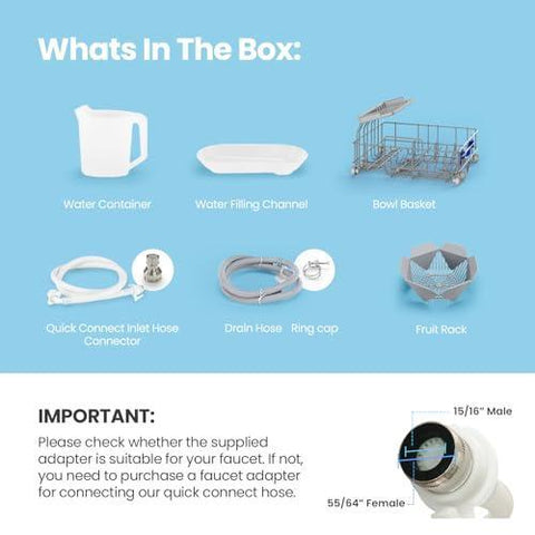 - Humanized Design: Our humanized dishwasher includes a water filling guide to prevent water spillage and a fruit basket for tidy fruit washing, making your kitchen tasks effortless.